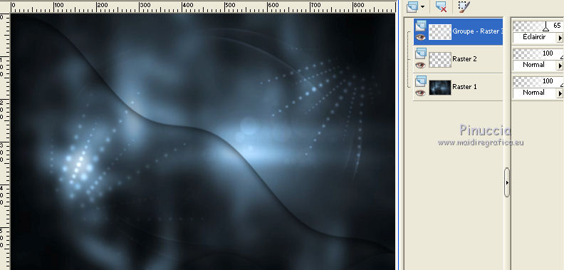 Placer le calque en mode Éclaircir et réduire l'opacité à 65%.