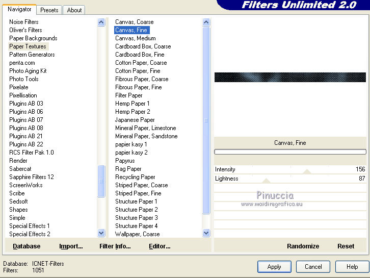 18. Effets>Modules Externes>Filters Unlimited 2.0 - Paper Textures – Canvas Fine, par défaut.