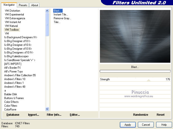 23. Effets>Modules Externes>Filters Unlimited 2.0 - VM Toolbox - Blast.