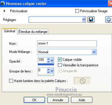 Calques>Nouveau calque raster et profiter de la fenêtre qui s'ouvre pour le nommer "snow 1".