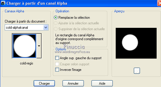 Sélections>Charger/Enregistrer une sélection>Charger à partir d'un canal alpha.