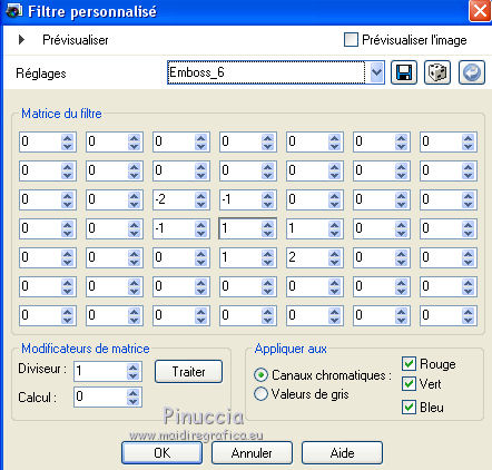8. Effets>Filtre personnalisé - sélectionner le preset Emboss 6 et ok.