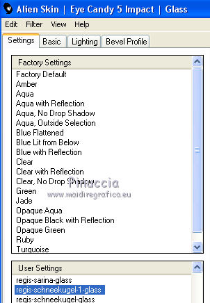 Sélectionner le preset regis-schneekugel-glass et ok.