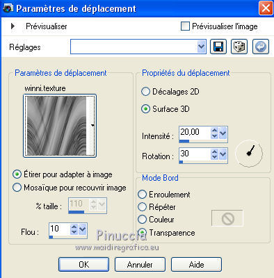 8. Effets>Effets de distorsion>Paramètres de déplacement, sélectionner la texture winni.textur029.