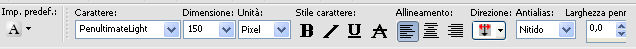 scegli un font, per l'esempio PenultimateLight – dimensione 150 pixels