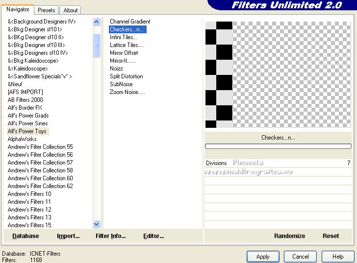 13. Effets>Modules Externes>Filters Unlimited 2.0 - Alf's Power Toys - Checkers_n