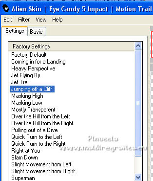 7. Effets>Modules Externes>Alien Skin Eye Candy 5 Impact - Motion Trail.