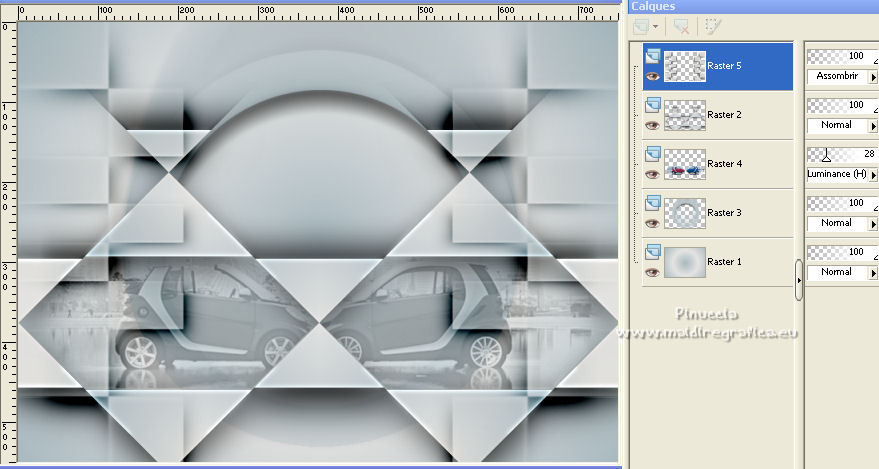 Placer le calque en mode Luminance (héritée) et réduire l'opacité à 28%.