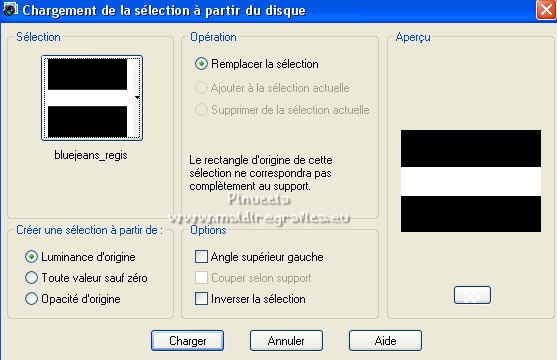 3. Sélections>Charger/Enregistrer une sélection>Charger à partir du disque.