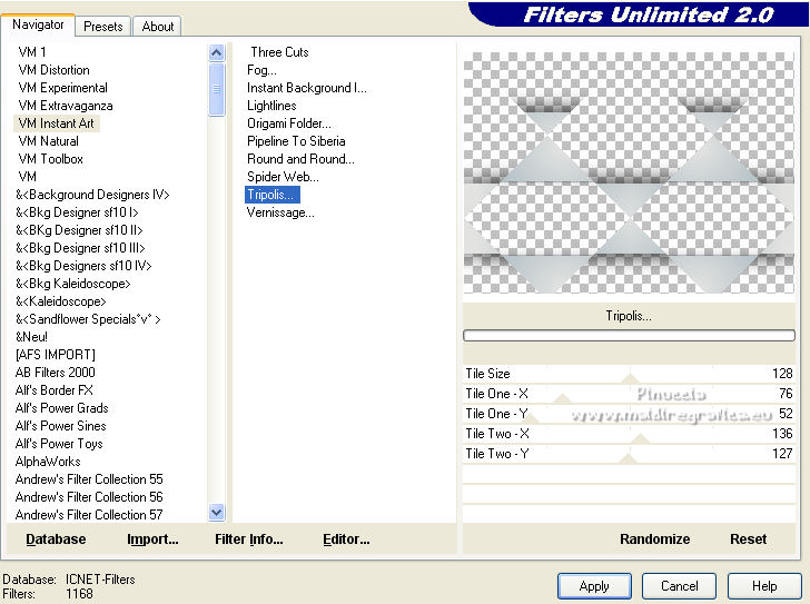 Effets>Modules Externes>Filters Unlimited 2.0 - VM Instant Art - Tripolis, par défaut.