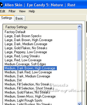 4. Effetti>Plugins>Alien Skin Eye Candy 5 Nature - Rust.