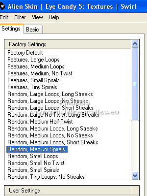 6. Effetti>Plugins>Alien Skin Eye Candy 5 Textures - Swirl