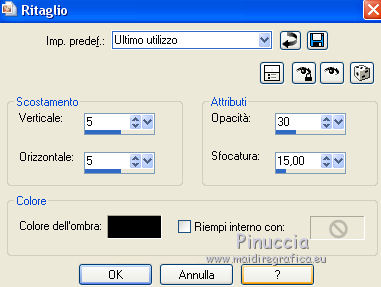 Effetti>Plugins>Alien Skin Eye Candy 5 Impact - Perspective Shadow, con i settaggi precedenti.