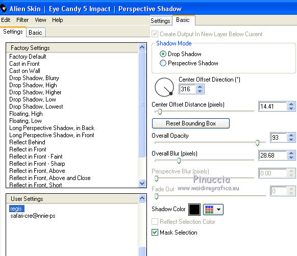 11. Effetti>Plugins>Alien Skin Eye Candy 5 Impact - Perspective Shadow.