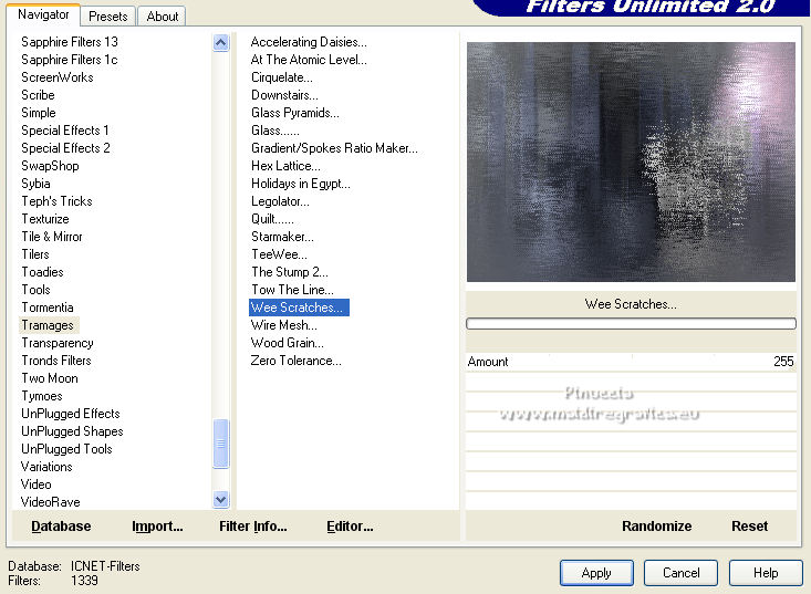 18. Effets>Modules Externes>Filters Unlimited 2.0 - Tramages - Wee Scratches, par défaut
