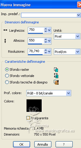 1. Apri una nuova immagine nera 750 x 550 pixels.