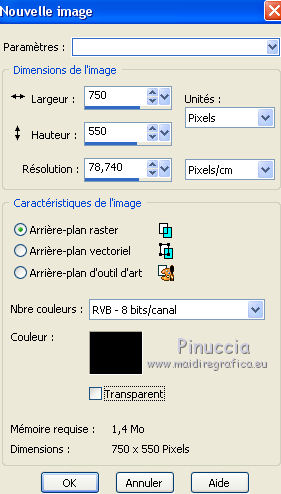 1. Ouvrir une nouvelle image noire 750 x 550 pixels.