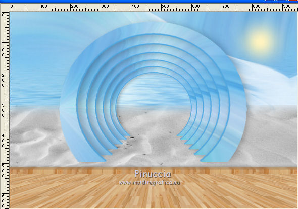 et effacer une petite partie du bateau pour donner l'idée de se trouver entre les arcs.