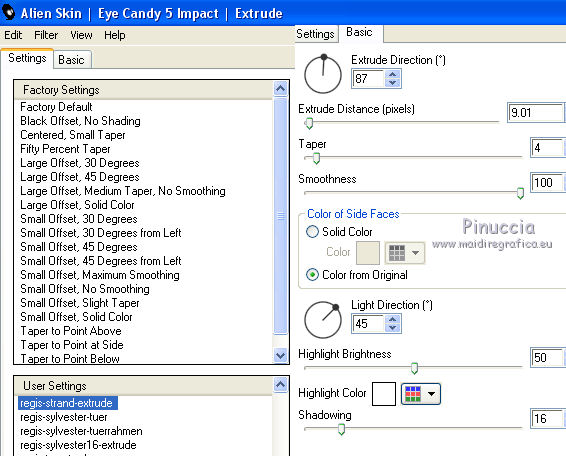 Effets>Modules Externes>Alien Skin Eye Candy 5 Impact - Extrude