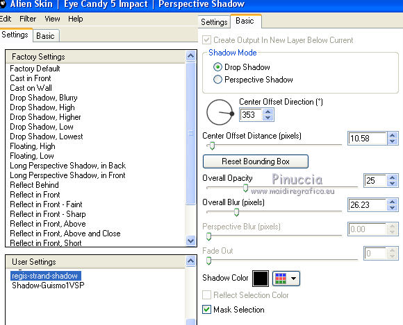 Effets>Modules Externes>Alien Skin Eye Candy 5 Impact - Perspective Shadow - preset regis-strand-shadow.