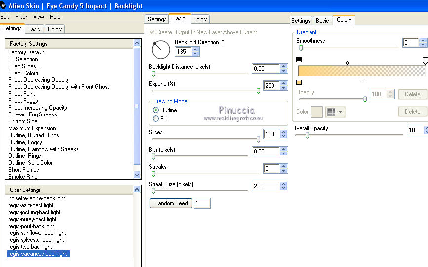 Sélectionner le preset regis-vacances-backlight et ok.