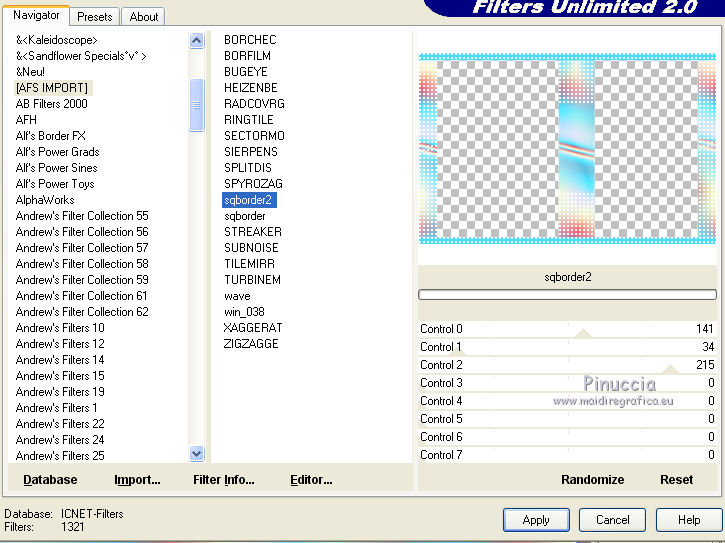 7. Effets>Modules Externes>Filters Unlimited 2.0 - AFS IMPORT - sqborder2, par défaut.