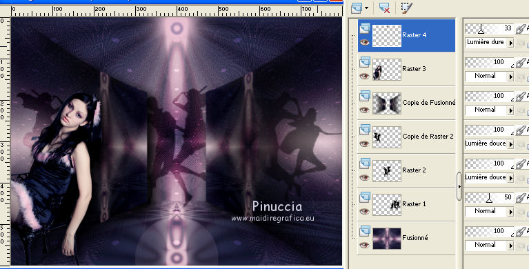 Placer le calque en mode Lumière dure et réduire l'opacité à 33%.