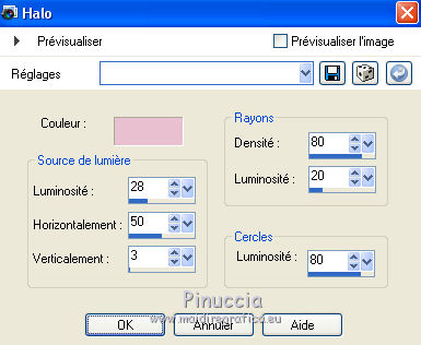 Effets>Effets d'éclairage>Halo, couleur claire d'arrière plan