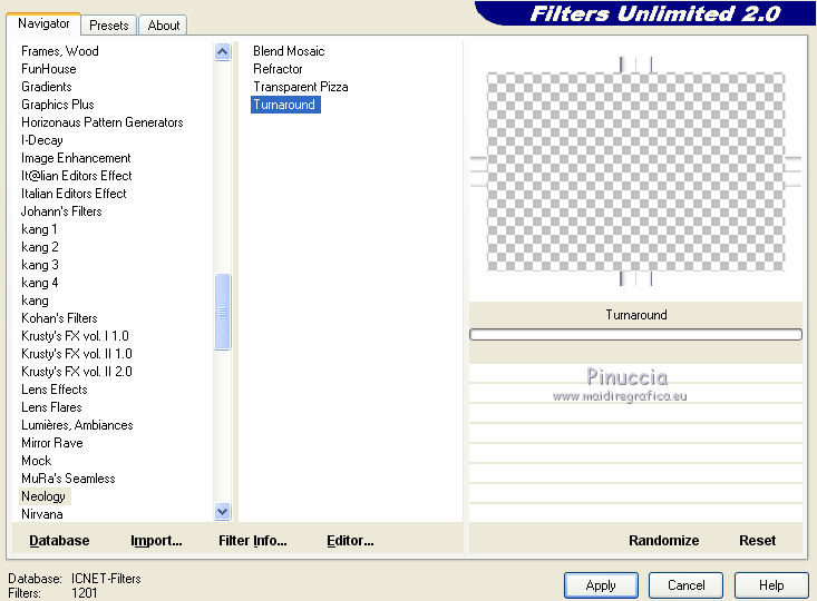 34. Effetti>Modules Externes>Filters Unlimited 2.0 - Neology - Turnaround.