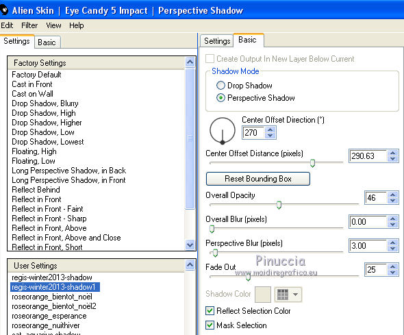 Effets>Modules Externes>Alien Skin Eye Candy 5 Impact - Perspective Shadow.