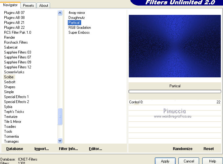 3. Effets>Modules Externes>Filters Unlimited 2.0 - Scribe - Partical.