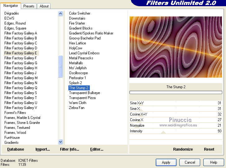 13. Effets>Modules Externes>Filters Unlimited 2.0 - Filter Factory Gallery E - The Stump2, par défaut.