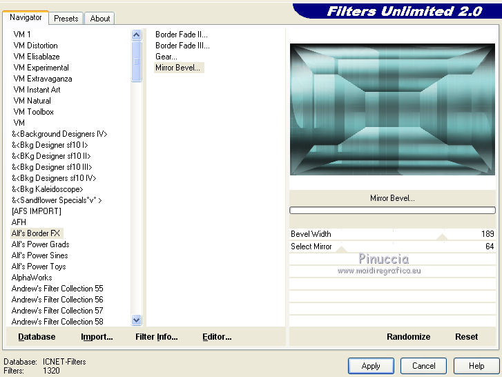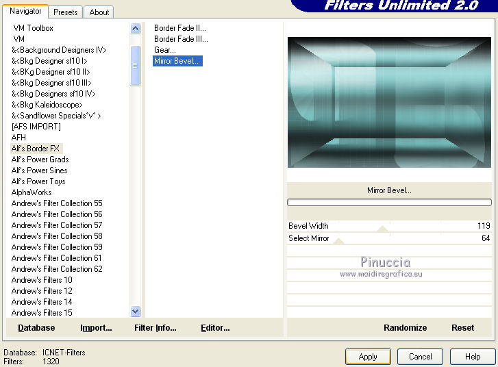 7. Effects>Plugins>Filters Unlimited 2.0 - Alf's Border FX - Mirror Bevel.