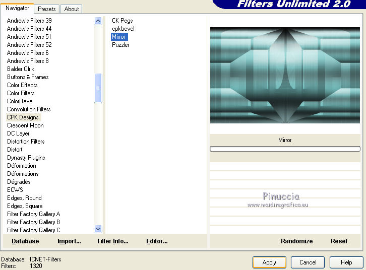 8. Effects>Plugins>Filters Unlimited 2.0 - CPK Design - Mirror.