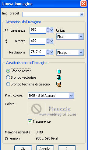 2. Apri una nuova immagine trasparente 950 x 690 pixels.