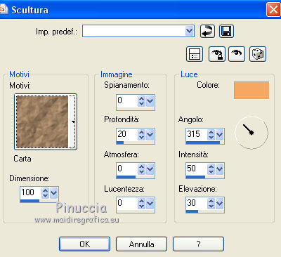 Effetti>Effetti di trama>Scultura - selezione il motivo Carta, colore di primo piano.