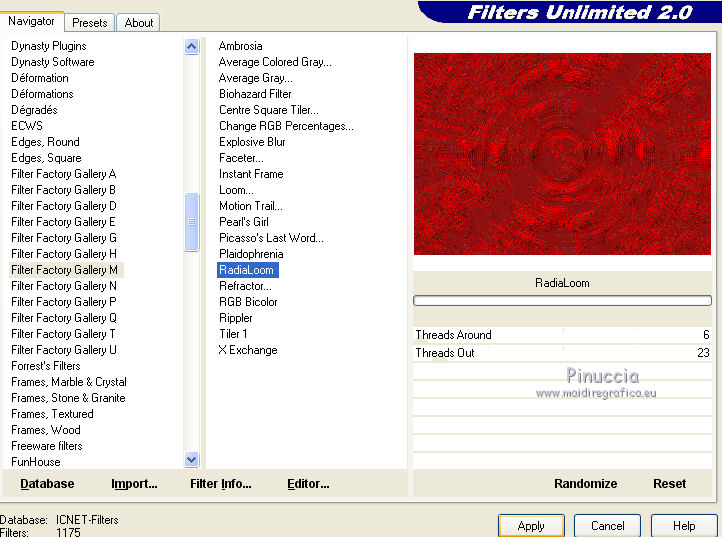 Effetti>Plugins>Filters Unlimited 2.0 - Filter Factory Gallery M - RadialLome.