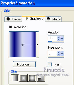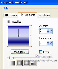 Passa il colore di primo piano a Gradiente e seleziona il gradiente Blue metallico (standard in PSP), con i seguenti settaggi.