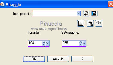 Regola>Tonalità e saturazione>Viraggio.