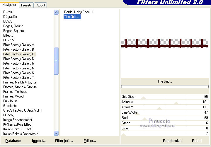 Effetti>Plugins>Filters Unlimited 2.0 - Factory Gallery C - The Grid.