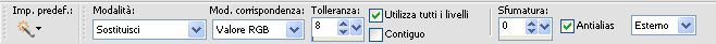 Attiva lo strumento Bacchetta magica con i seguenti settaggi.