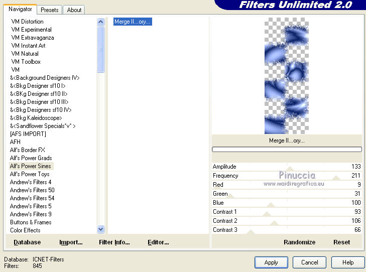 Effetti>Plugins>Filters Unlimited - Alf's Power sines - Merged 2 ory, con i settaggi standard.