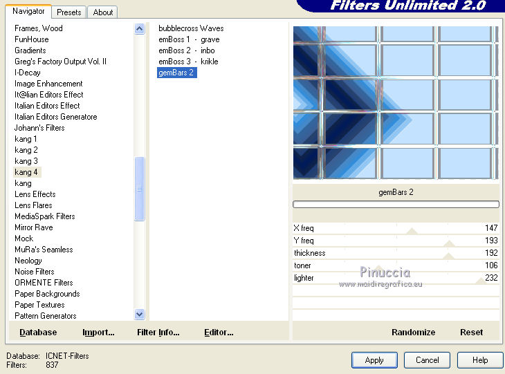 Effetti>Plugins>Filters Unlimited 2.0 - Kang 4 - gemBars2.
