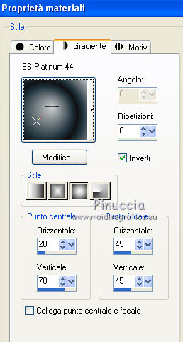 Passa il colore di primo piano a Gradiente, e seleziona il gradiente ES Platinium 44,
