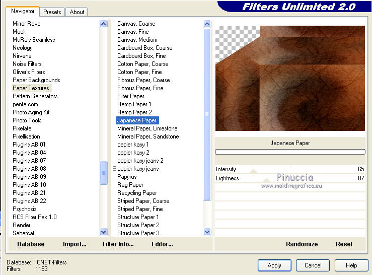 Effetti>Plugins>Filters Unlimited 2.0 - Paper Texture - Japanese Paper
