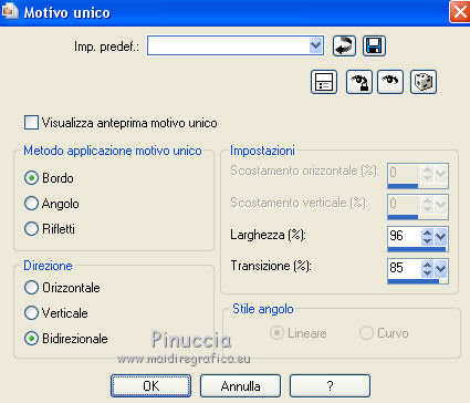 Effetti>Effetti di immagine>Motivo unico, con i settaggi standard.