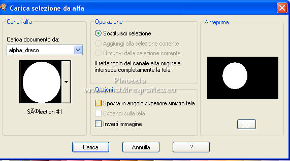 La copia, che sarà la base del tuo lavoro, non è vuota, ma contiene una selezione salvata sul canale alfa.