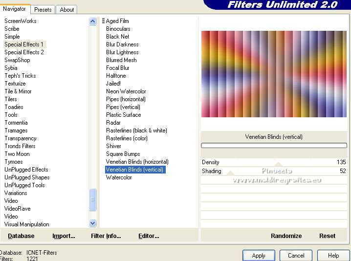 5. Effetti>Plugins>Filters Unlimited 2.0 - Special Effect 1 - Venetian Blinds Vertical.