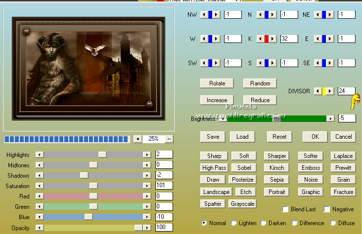 23. Effetti>Plugins>AAA Filters - Custom - clicca su Landscape e imposta Brightness -5