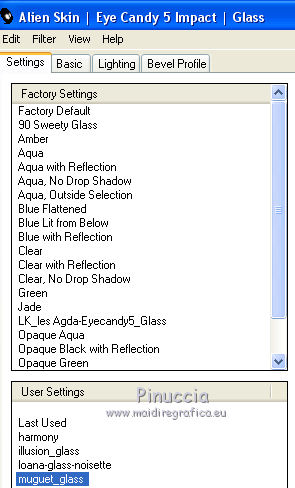 Effetti>Plugins>Alien Skin Eye Candy 5 Impact - Glass.